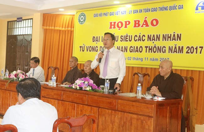 Phát biểu khai mạc tại họp báo, TT.Thích Thiện Thống đã nói: Đây là lần thứ 6 tại Việt Nam, Ủy ban ATGTQG phối hợp với các địa phương, đoàn thể chính trị, các tổ chức tôn giáo tổ chức các hoạt động hưởng ứng “Ngày thế giới tưởng niệm các nạn nhân tử vong do TNGT”. Đại lễ Cầu siêu cho các nạn nhân tử vong vì TNGT được tổ chức nhằm tưởng nhớ những người không may qua đời vì TNGT, qua đó gửi đến toàn xã hội lời cảnh báo về những mất mát, thiệt hại to lớn mà từng gia đình, cộng đồng và xã hội phải gánh chịu do TNGT. Đồng thời, kêu gọi sự chung tay cùng hành động của từng cá nhân, tổ chức, cộng đồng để ngăn chặn, đẩy lùi và cùng sẻ chia, xoa dịu những nỗi đau do TNGT gây ra. Hòa thượng cũng mong rằng các cơ quan, ban ngành thông tấn báo chí sẽ tuyên truyền Đại lễ tưởng niệm những người không may tử nạn vì TNGT đến cộng đồng xã hội. Thông qua Đại lễ Cầu siêu này, BTC muốn gửi đếnCộng đồng xã hội ý thức, trách nhiệm chấp hành ATGT và Hòa thượng cũng cầu chúc cho Đại lễ tưởng niệm được tổ chức thành công viên mãn.