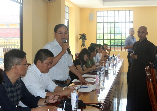 Chứng minh và chủ trì buổi họp báo về phía Trung ương GH có sự hiện diện của: TT.Thích Thiện Thống, Phó tổng thư ký kiêm chánh VP II TW GH; HT. Thích Thiện Đức, UV thường trực HĐTS, Phó Ban Kiểm soát GHPGVN. Về phía BTS GHPGVN tỉnh Bình Dương có: HT.Thích Huệ Thông, Ủy viên thư ký HĐTS, Phó VPII TW Giáo hội, Trưởng BTS GHPGVN tỉnh Bình Dương và Chư Tôn đức thường trực BTS 09 đơn vị huyện,thị, thành phố trực thuộc Bính Dương cũng đồng tham dự.