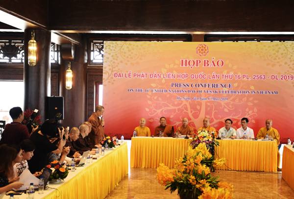 Phát biểu tại buổi họp báo, Hòa thượng Thích Thanh Nhiễu – Phó Chủ tịch Thường trực Hội đồng trị sự Giáo hội Phật giáo Việt Nam cho biết, Đại lễ Phật đản Liên hợp quốc – Vesak 2019 sẽ diễn ra từ ngày 12 – 14/5/2019 tại Trung tâm Văn hóa Phật giáo Tam Chúc (xã Ba Sao, huyện Kim Bảng, tỉnh Hà Nam) với chủ đề: Cách tiếp cận của Phật giáo về sự lãnh đạo toàn cầu và trách nhiệm cùng chia sẻ vì xã hội bền vững.