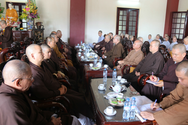 Vào lúc 14h00 chiều nay, BTS GHPGVN Tp Đà Nẵng đã tổ chức phiên họp để triển khai công tác tang lễ. Tham dự cuộc họp có HT. Thích Như Thọ – Thành viên HĐCM GHPGVN, CM BTS GHPGVN Tp Đà Nẵng; HT. Thích Chí Mãn – UV HĐTS GHPGVN, Phó BTS kiêm Trưởng ban Tăng sự GHPGVN Tp Đà Nẵng; HT. Thích Từ Tánh – UV HĐTS GHPGVN, Phó BTS kiêm Trưởng ban GDTN GHPGVN Tp Đà Nẵng; HT. Thích Huệ Thường – Phó BTS GHPGVN Tp Đà Nẵng; TT. Thích Pháp Cao – UVDK HĐTS GHPGVN, Phó BTS GHPGVN Tp Đà Nẵng; ĐĐ. Thích Thông Đạo – UV HĐTS GHPGVN, Phó ban kiêm Chánh thư ký BTS GHPGVN Tp Đà Nẵng; Chư tôn đức thường trực BTS GHPGVN Tp Đà Nẵng và BTS các quận huyện; Chư Tôn đức Tăng Ni trú trì các chùa trên địa bàn Tp Đà Nẵng; Chư tôn đức môn phái Chúc Thánh và môn đồ pháp quyến.