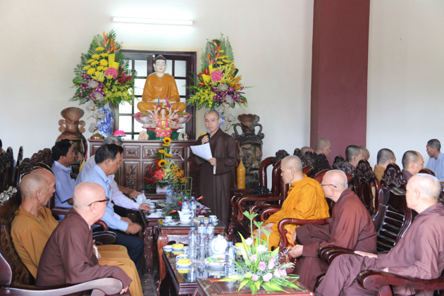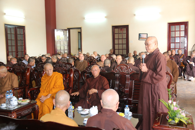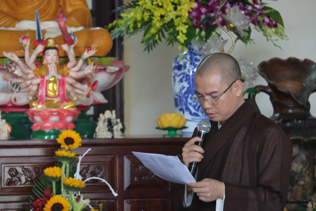 HT. Thích Chí Mãn đã thay mặt thường trực BTS GHPGVN Tp Đà Nẵng phát biểu mong muốn Chư Tôn đức Tăng Ni dành thời gian tham dự và hỗ trợ cho công tác tang lễ của Hòa thượng Trưởng Ban trị sự được thập phần viên mãn.