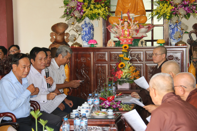 Tham dự cuộc họp còn có ông Nguyễn Đăng Hải – Phó chủ tịch thường trực UBMTTQVN Tp Đà Nẵng; ông Ngô Khôi – Phó giám đốc Sở nội vụ, Trưởng ban tôn giáo Tp Đà Nẵng; ông Vương Văn Quý – Phó phòng ANXH Công an Tp Đà Nẵng; Đại diện các ban ngành đoàn thể quận Sơn Trà và phường Thọ Quang; BHD Phân ban GĐPT Đà Nẵng.