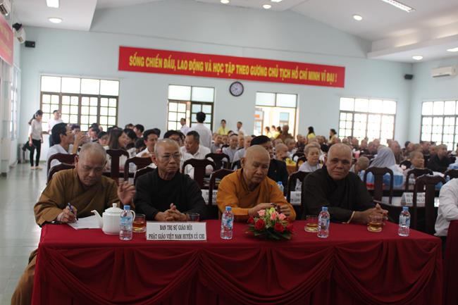 Thượng Tọa Thích Quảng Tánh-Phó Thường trực Ban Trị sự Giáo hội Phật giáo Việt Nam huyện Củ Chi cũng đã báo cáo tình hoạt động trong năm qua và ngỏ lời cảm ơn sự quan tâm của Đảng và Nhà nước, chính quyền địa phương đối với các tôn giáo. Với đường hướng “Đạo pháp – dân tộc – Chủ nghĩa xã hội”, hướng tới, các chức sắc, đồng bào Phật tử huyện Củ Chi tiếp tục tham gia các phong trào thi đua yêu nước, củng cố khối đại đoàn kết toàn dân tộc, thực hiện các chủ trương của Đảng, chính sách pháp luật của Nhà nước và có nhiều đóng góp trong công tác xã hội địa phương
