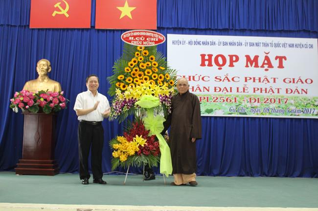 Cũng trong buổi họp mặt, lãnh đạo Huyện ủy, HĐND, UBND, Ủy ban MTTQ Việt Nam huyện Củ Chi đã tặng hoa và quà cho Ban Trị sự Giáo hội Phật giáo huyện Củ Chi.