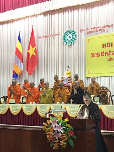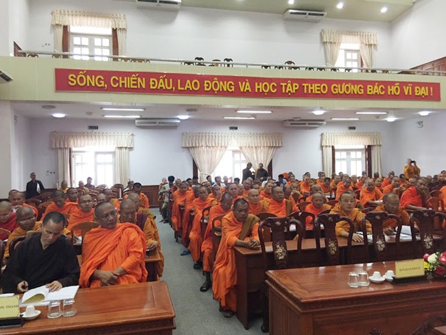 Đồng thời, Hòa thượng cũng đôn đốc chỉ đạo các vị trong ban tổ chức rà soát lại các khâu tổ chức hội nghị để hội nghị ngày mai diễn ra thành công tốt đẹp và đem lại lợi ích cho tứ chúng. TT Thích Huệ Thông – Ủy viên thư ký HĐTS, phó Văn phòng 2 – báo cáo về việc các tham luận của PGNT Khmer kỳ này có hơn 10 bài phát biểu tham luận nên xin phép ban tổ chức xắp xếp cho mỗi đại biểu phát biểu tham luận không quá 10 phút.