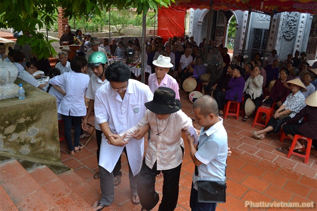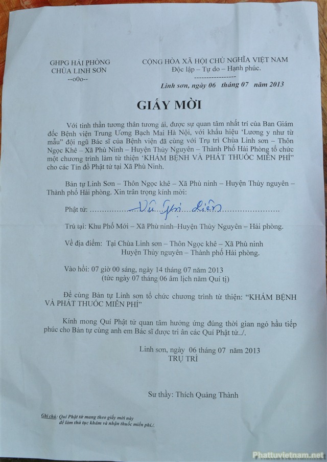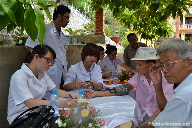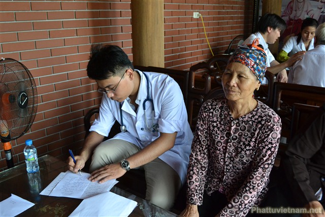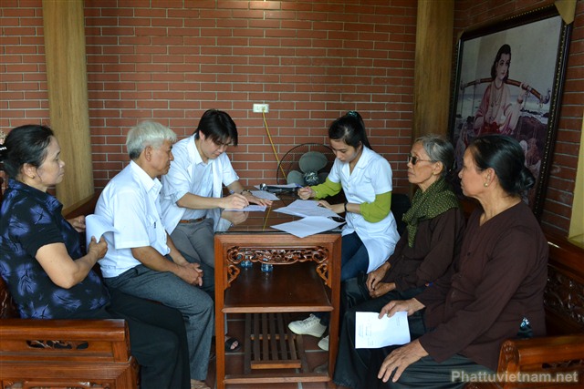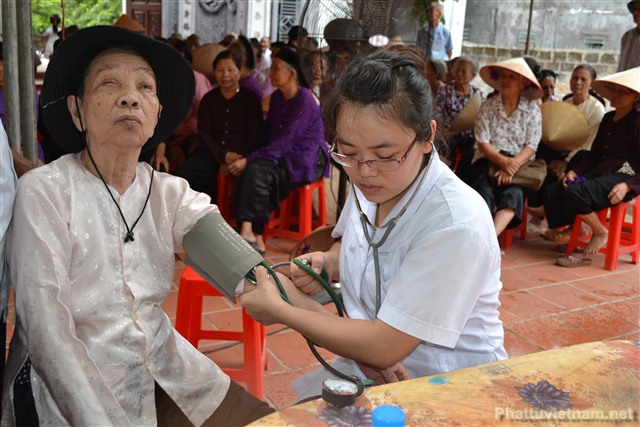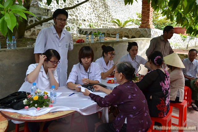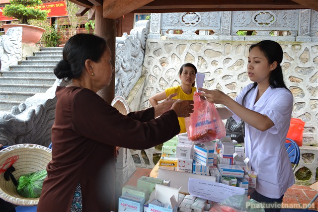 Nhận lời mời của ĐĐ. Thích Quảng Thành – Trụ trì chùa Linh Sơn, ngay từ sáng sớm, hơn 20 y bác sỹ thuộc khoa huyết học – truyền máu, bệnh viện Bạch Mai TP. Hà Nội đã có mặt tại chùa Linh Sơn, thôn Ngọc Khê, xã Phù Ninh, huyện Thủy Nguyên TP. Hải Phòng để khám chữa bệnh và phát thuốc miễn phí cho hơn 300 bệnh nhân trong xã Phù Ninh. Bà con, Phật tử, nhân dân trong xã cũng đã có mặt từ rất sớm để đi khám bệnh và nhận thuốc miễn phí.