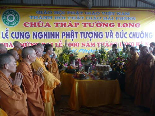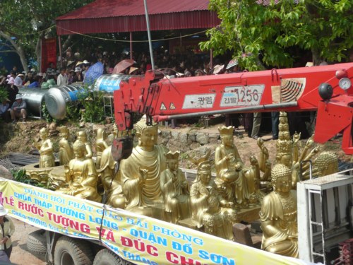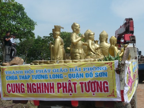 Từ 6 giờ sáng, gần 1.000 Phật tử, trên hàng chục xe ô tô lớn nhỏ đã vân tập, phấn khởi cung rước tượng Phật từ chùa Dư Hàng ở trung tâm thành phố về chùa Tháp Tường Long – Đồ Sơn, trên quãng đường chừng hơn 20 cây số đường bằng và gần 05 cây số đường leo dốc đổ đèo lên núi.
