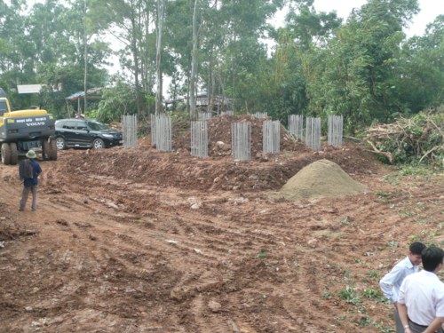 Trên công trường đang cùng một lúc kiến tạo nền móng và tầng trệt cho ngôi đại điện hình chữ công – (I) với 15 gian lớn, trên mặt bằng gần 1.500m2 theo lối chùa cổ bằng gỗ quý; nhà Tổ sẽ được xây dựng ngay sau đại điện với tượng Tây Phương Tam Thánh bằng chất liệu gốm sứ Bát Tràng truyền thống, có kích thước lớn; kế sau là khu lầu bảo tàng di chỉ khảo cổ nền móng của tháp Tường Long nhà Lý; kế bên trái về phía biển Đông là khu xây dựng (mô phỏng) tháp Tường Long đang làm móng…