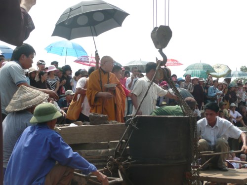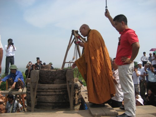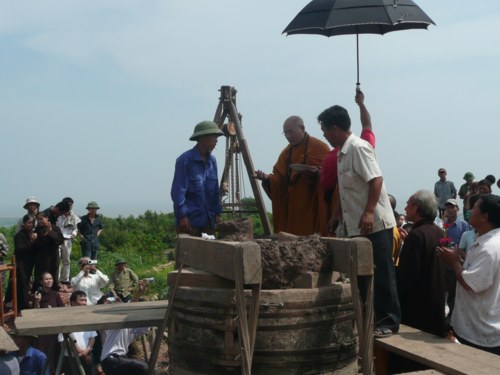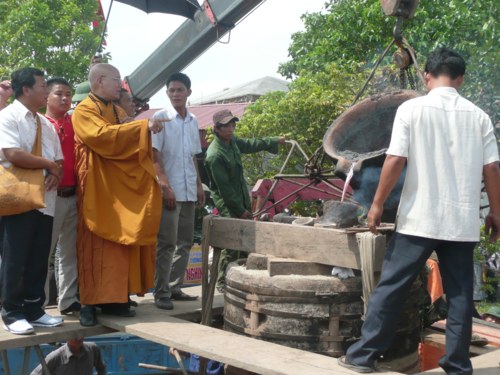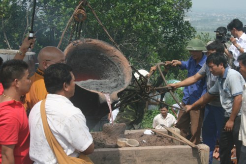 Cảm động biết bao khi thấy những cụ già, lưng đã còng, trông thật lam lũ, nghèo khó, thôn dã, lần tìm đôi bông tai hay cặp nhẫn kỷ vật cất kỹ trong hầu bao, hay gỡ cặp bông vàng trên đôi tai già nhăn nheo chảy xệ, để rồi run run xúc động trào nước mắt, hai tay dâng cúng Thượng tọa trụ trì, nhờ Ngài thả dùm vào dòng nước đồng đỏ lịm đang rót vào khuôn…