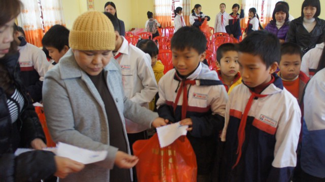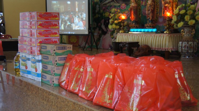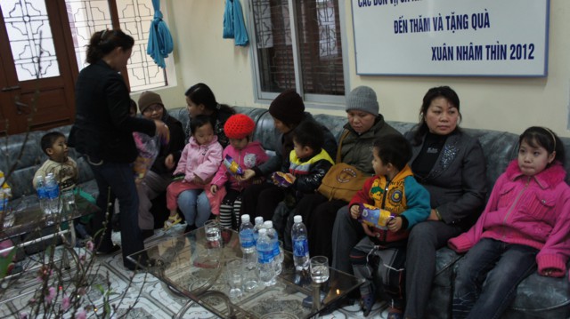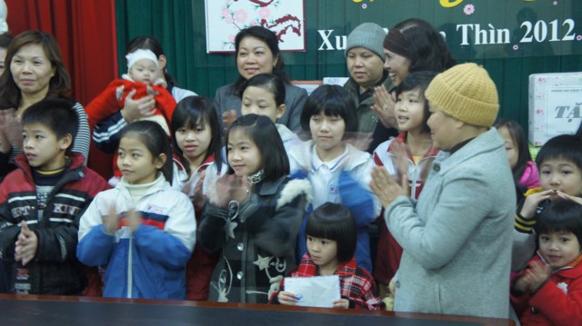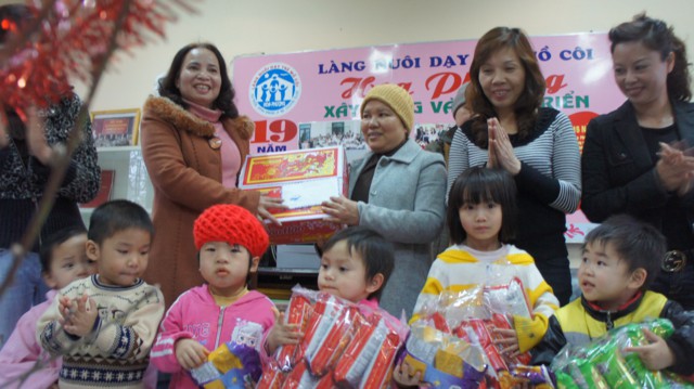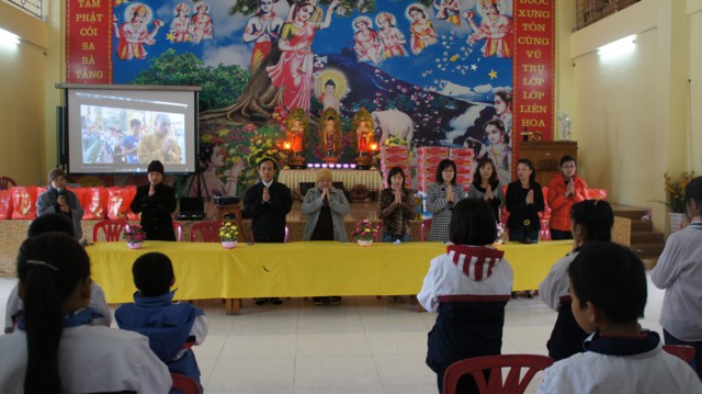 Buổi chiều cùng ngày, Ni Sư Thích Tâm Chính, các Sư Cô trong trốn trụ xứ cùng một số Phật tử, các nhà hảo tâm cũng đi thăm và tặng 55 xuất quà cho các em của Làng nuôi dạy trẻ mồ côi hoa phượng TP. Hải Phòng và tặng 20 xuất quà cho các em tại Trung tâm nuôi dưỡng trẻ em bị nhiễm HIV/AIDS Thanh Xuân – Hải Phòng.