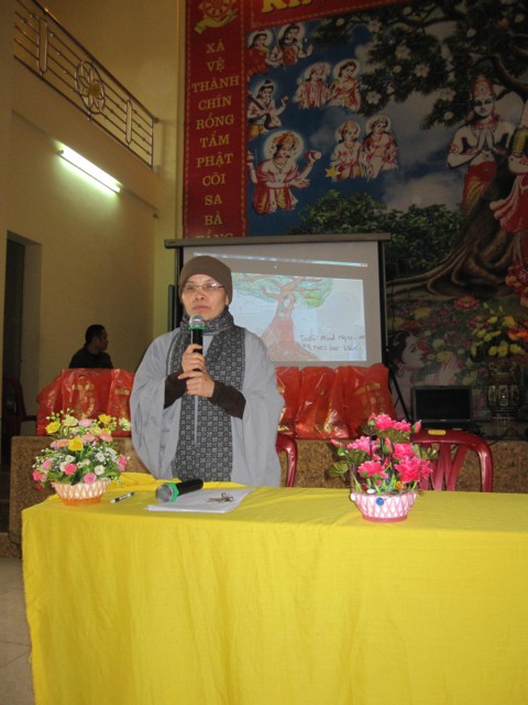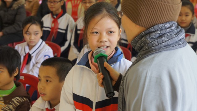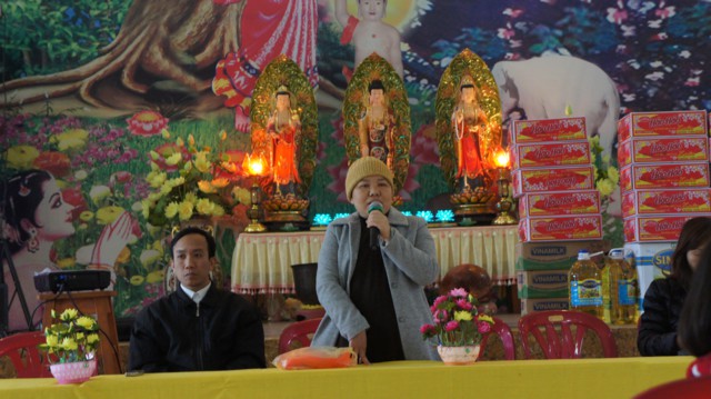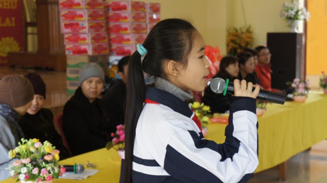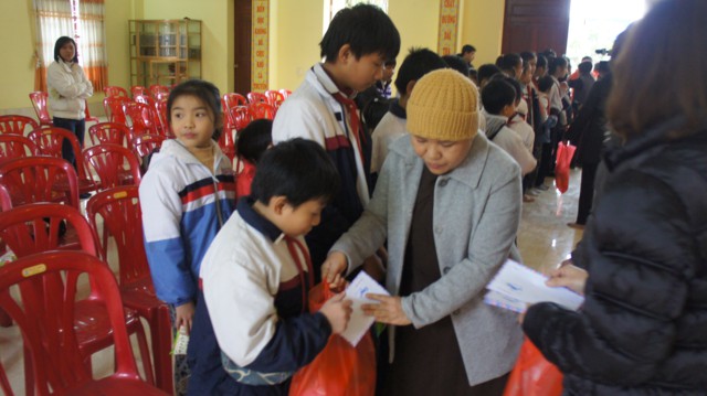 Tiếp theo, Ni Sư Thích Tâm Chính, trụ trì chùa Vẽ đã ban đạo từ, sách tấn các em nghe lời thầy cô, cha mẹ, chịu khó học tập thật giỏi để trở thành những người con ngoan, trò giỏi để sau này trở thành những chủ nhân tương lai của Đất nước, không phụ lòng mong đơi của các Thầy cô và Cha mẹ. Việc tặng quà cho các em hôm nay cũng chính là để thể hiện được tinh thần của lòng từ bi, bác ái trong Đạo Phật.