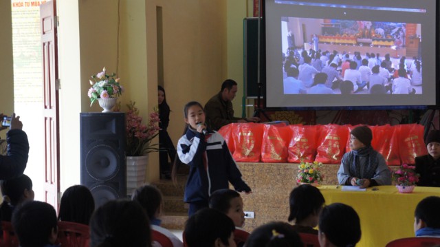 Trước khi buổi lễ trao quà diễn ra, các em được các Sư cô hướng dẫn chơi một số trò chơi mang tính đậm tính chất Phật Giáo, được xem chương trình văn nghệ do chính các em biểu diễn.