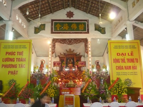Được biết, chùa Nam Hải sắp hạ giải đã được cố Trưởng lão Thích Trí Hải chủ trì xây dựng năm 1953, trên một bãi rác với tư cách chỉ là một hội sở, hội đồng thiện, xây dựng bán kiên cố, nhưng đã có vai trò và ấn tượng đặc biệt đối với PGHP, đã là trụ sở của Thành hội ngay từ ban đầu cho tới nay.