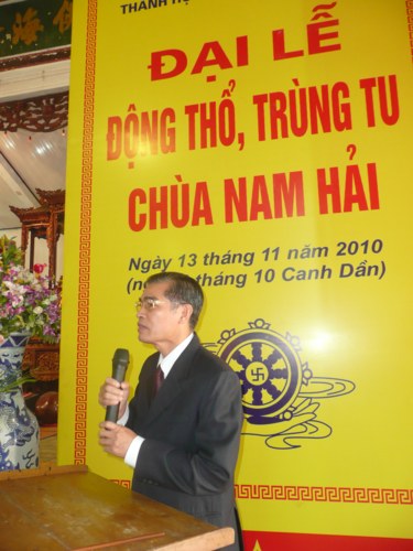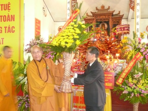 Về phía chính quyền có sự hiện diện của ông Nguyễn Đình Then – Chủ tịch MTTQVN TPHP cùng các vị lãnh đạo, nguyên lãnh đạo chủ chốt thành ủy, UBNDTP, các sở ban ngành TP, quận huyện và đông đảo các nhà doanh nghiệp, các nhà đàn việt tín thí.
