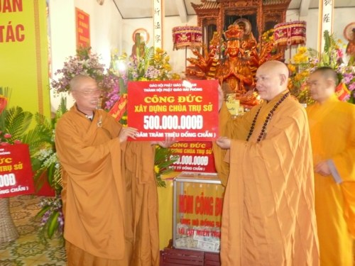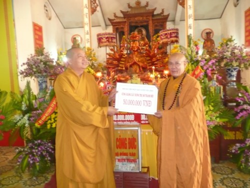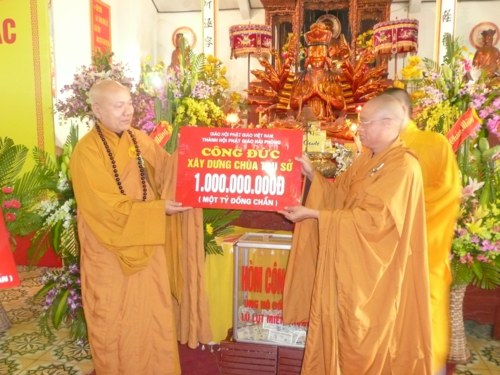 Ngay trong Đại lễ, BTC đã huy động được nhiều tỷ đồng, trong đó TT Quảng Tùng xin cúng dàng 1 tỷ, TT Thanh Giác xin cúng dàng 500 triệu, Công ty Xi măng HP xin cúng dàng 1.000 tấn xi măng, rất nhiều tự viện, chư Tôn đức và các nhà doanh nghiệp xin cúng dàng hàng trăm, hàng chục triệu đồng.