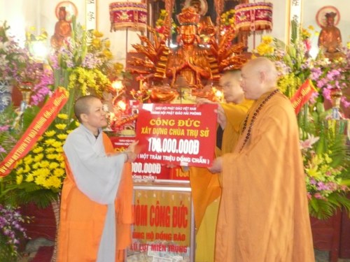 Được biết PGHP vừa qua đã tổ chức nhiều đoàn, trong đó có 2 đoàn lớn của Thành hội do đích thân chư TT Quảng Tùng và Thanh Giác điều hành đã lặn lội vào tận vùng sâu xa của Hà Tĩnh, Quảng Bình chia sẻ với đồng bào bị nạn, mang đến cho các nạn nhân sự động viên, an ủi, tiền tài, nhu yếu phẩm cấp bách, trị giá rất nhiều tỷ đồng.