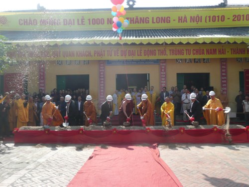 Sau nghi nghi lễ niệm hồng danh Đức Bản sư gia hộ, Thượng tọa Thích Quảng Tùng đã tuyên đọc diễn văn Đại lễ động thổ tâm linh, tuyên thuyết lại lịch sử và sứ mệnh lịch sử của ngôi chùa Nam Hải lừng danh đất Cảng; về công lao to lớn của cố Trưởng lão Thích Trí Hải đối với Phật giáo HP nói chung và chùa Nam Hải nói riêng; về hiện trạng và nhu cầu cấp thiết xây dựng lại trụ sở THPGHP…