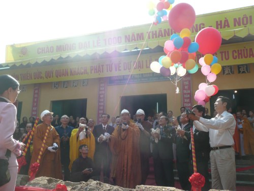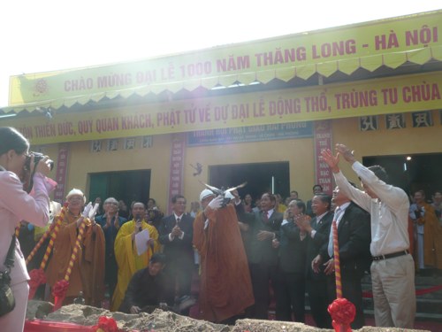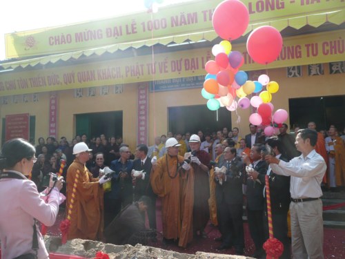 Sau nghi thức động thổ tâm linh là lễ thả chim bồ câu và bóng bay cầu hòa bình an lạc cho thập phương chúng sinh.