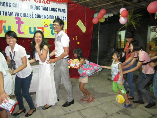 Nhằm xoa dịu nỗi đau mất mát cho các em, nhân dịp tết trung thu năm nay, các bạn sinh viên thuộc khoa Quản trị kinh doanh, Đại học Hải Phòng cùng một nhóm thanh niên Phật tử Hải Phòng đã tổ chức đêm văn nghệ, phát quà và vui tết trung thu cùng các em.
