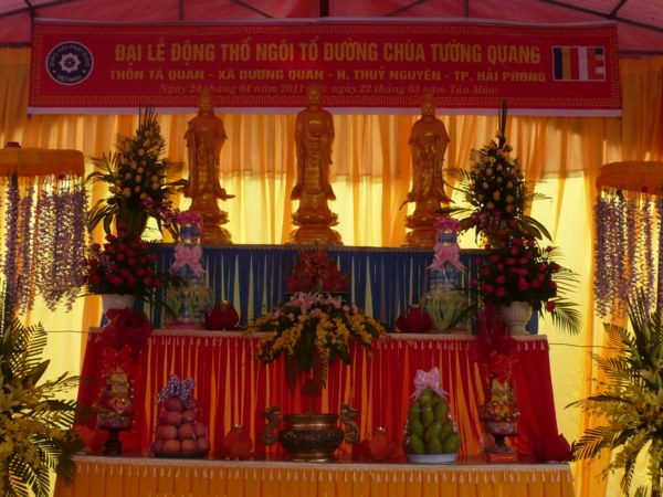 Sau nghi lễ niệm hồng danh Đức Bản sư gia hộ, đại diện ban Văn hóa xã đã tuyên đọc diễn văn khai mạc; Sư Thầy trụ trì Thích Diệu Huê đã trình bày phương án và dự toán xây dựng; Ông P. Chủ tịch UBND xã Đặng Quang Đo đã có bài phát biểu ôn lại truyền thuyết và lịch sử của ngôi chùa Tường Quang của làng Tả Lan xưa, nay là xã Dương Quan.