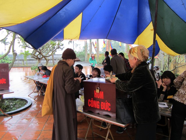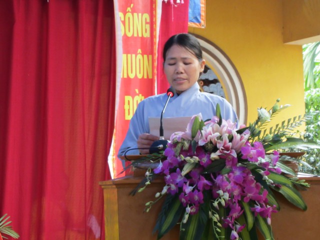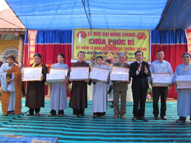 Sư Cô Thích Nữ Chung Châu đã trao bằng tuyên dương công đức cho đại diện các ban ngành, đoàn thể, các cá nhân đã đóng góp cho sự phát triển của chùa Phúc Bì trong suốt 10 năm vừa qua.