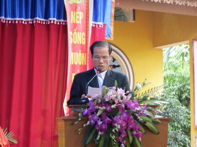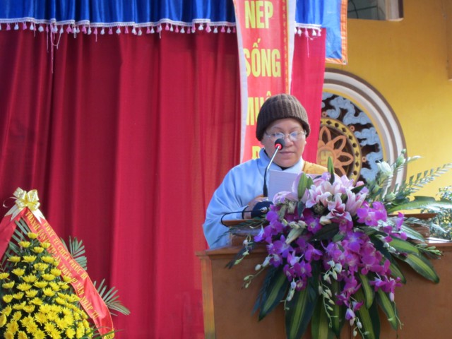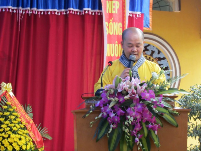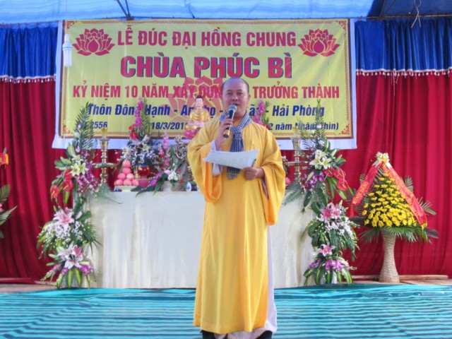 Đại diện cho Thành Hội PG TP Hải Phòng, ĐĐ. Thích Tục Khang ban Đạo từ nói lên ý nghĩa của buổi lễ đúc chuông cũng như tán thán công đức của các Phật tử và nhân dân địa phương cùng các Phật tử, nhân dân một số vùng lân cận.