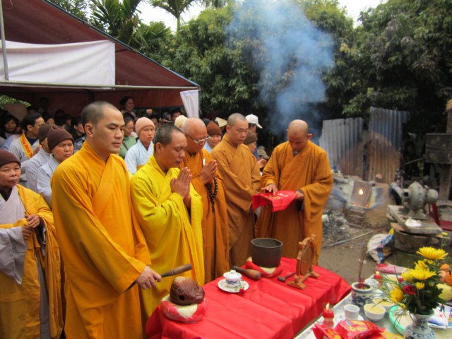 Đúng 10giờ sáng cùng ngày, Chư Tôn Đức Tăng Ni, đại diện chính quyền , Phật tử, nhân dân địa phương đã làm lễ dâng hương, bạch Phật và trì chú cầu chư Phật, chư đại Bồ tát, Chư hiền thánh Tăng, Thiên long hộ Pháp gia hộ để buổi lễ đúc hồng chung được thành tựu viên mãn.