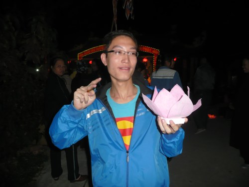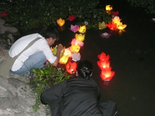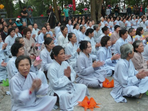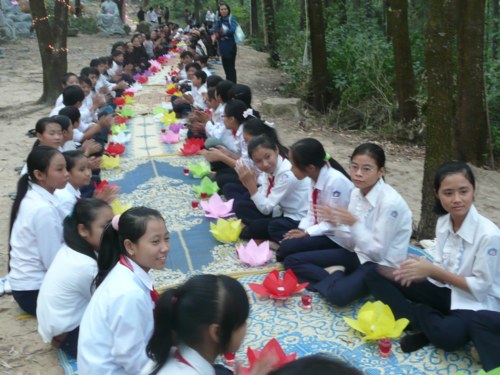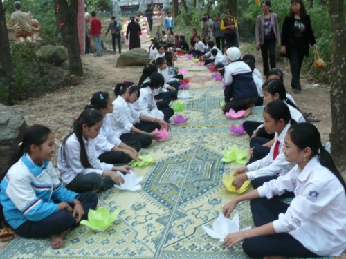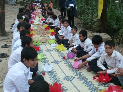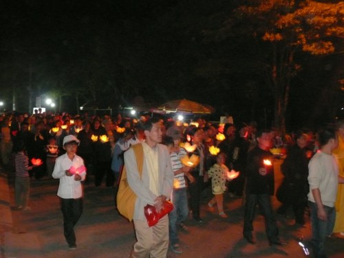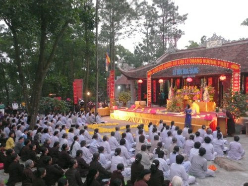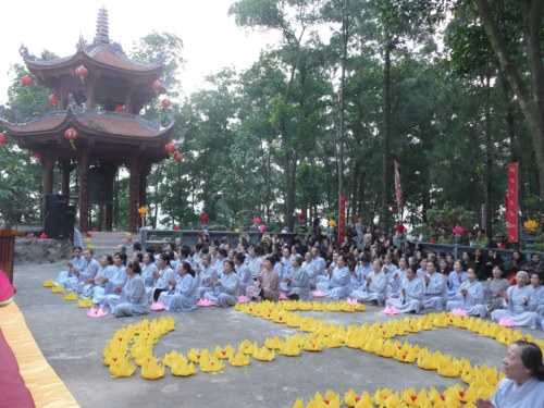 Từ lúc 16 giờ chiều, Phật tử phương xa đã tề tựu chuẩn bị cho đêm hội hoa đăng. Núi Đối không cao lớn nhưng thanh u, trang nhã. Đỉnh núi bằng phẳng, cây cối tốt tươi, sinh khí hào sảng. Đèn hoa sen, đèn dây được trang trí lộng lẫy trên sân trước đại điện, các lầu gác và con đường từ sân chùa đến lầu Quan Âm dài hàng trăm mét.