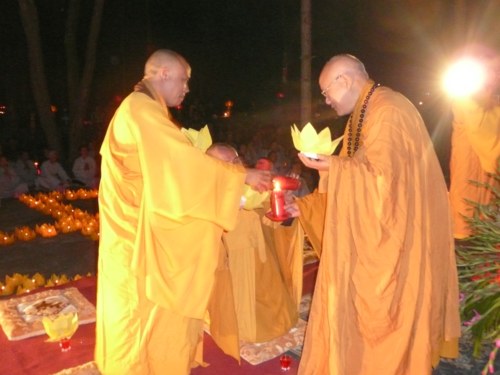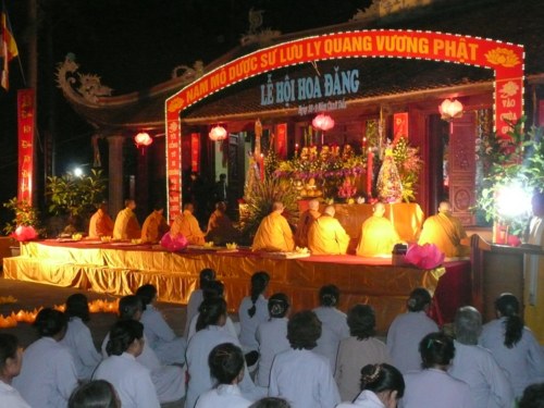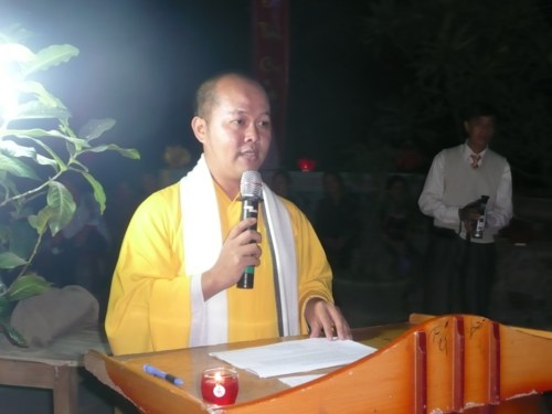 Sau nghi lễ niêm hương bạch Phật của chư Tăng và đại chúng, diễn văn lễ hội của Đại đức trụ trì là Đạo từ của TT. P. Chủ tịch. Ngài đã tuyên thuyết về ý nghĩa của lễ hội hoa đăng mừng khánh đản của đức Phật Dược Sư, đồng thời cũng là nghi lễ cầu an cho các tai ương chướng nạn, thiên tai đang hoành hành ở miền Trung.