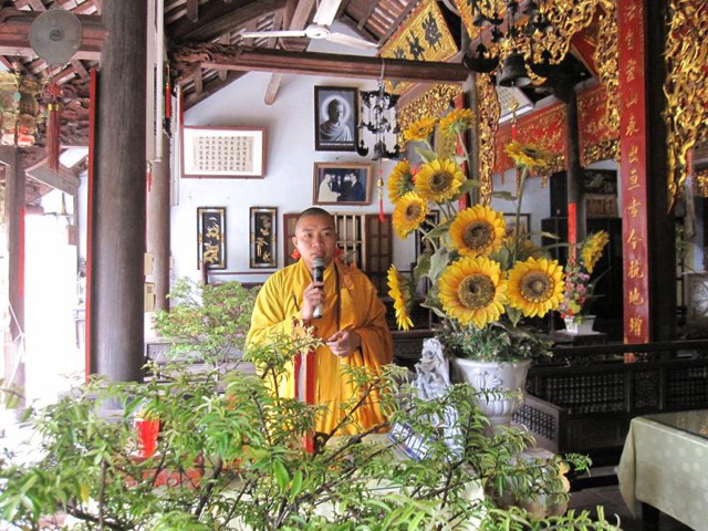Trước khi truyền thụ Tam quy, Ngũ giới cho các Phật tử, Thượng Tọa đã có một thời Pháp ngắn giảng về ý nghĩa và lợi ích của việc Quy y Tam Bảo và thụ Ngũ giới. Bốn lợi ích chính của việc Quy y Tam Bảo đó là: “Thứ nhất, từ hôm nay trở đi mỗi Phật tử sẽ có một chiếc “bè báu” để vượt qua sinh tử luân hồi, thứ hai là mỗi người sẽ có một mảnh đất bằng phẳng để gieo trồng cây thiện, cây tốt, thứ ba là mỗi người sẽ có một ngọn đèn sáng đó là ngọn đèn trí tuệ và thứ tư là từ nay mỗi Phật tử sẽ được bước lên con đường giải thoát”.