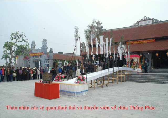 Sau 3 ngày tiến hành các nghi lễ cầu siêu cho các thuyền viên tử nạn trên tàu Vinalines Queen từ ngày 16 đến 18 tháng 12 năm Tân Mão tại chùa Thắng Phúc, huyện Tiên Lãng, TP. Hải Phòng. Sáng ngày 11 tháng 01 năm 2012 nhằm ngày 18 tháng 12 năm Tân mão cũng là ngày cuối cùng của Đại lễ cầu an, cầu siêu cho các thuyền viên tử nạn. Theo yêu cầu của người nhà các nạn nhân thuyền viên, Đại Đức Thích Quảng Minh – Trụ trì chùa Thắng Phúc, huyện Tiên Lãng đã cử hành nghi lễ cuối cùng trước khi thân nhân của các nạn nhân rước di ảnh các thuyền viên về tại địa phương để cử hành lễ tang
