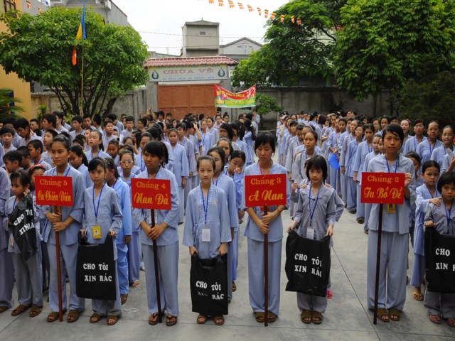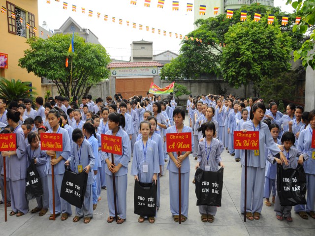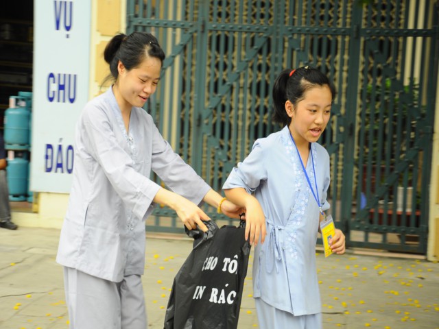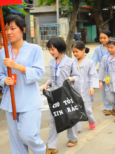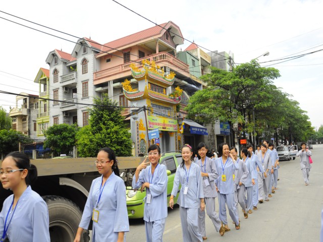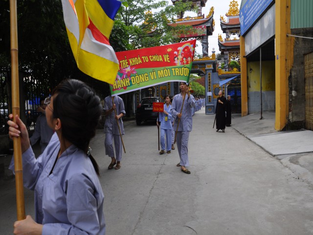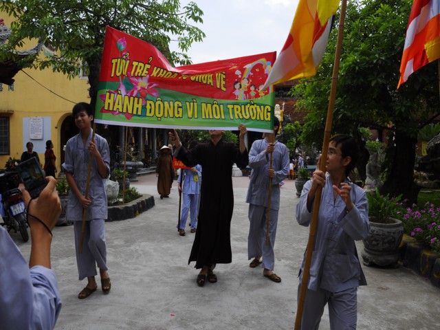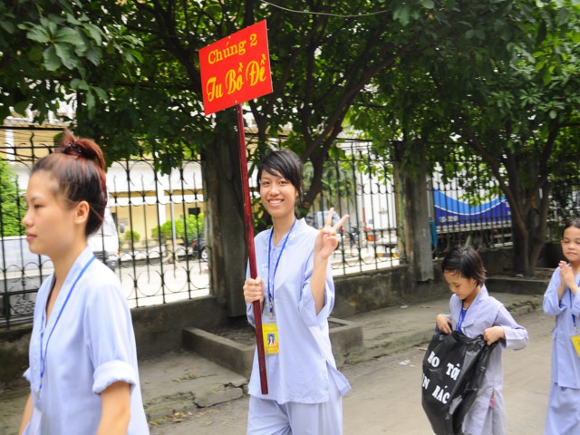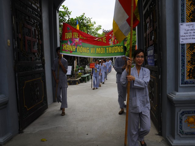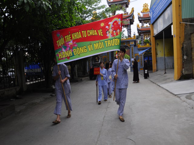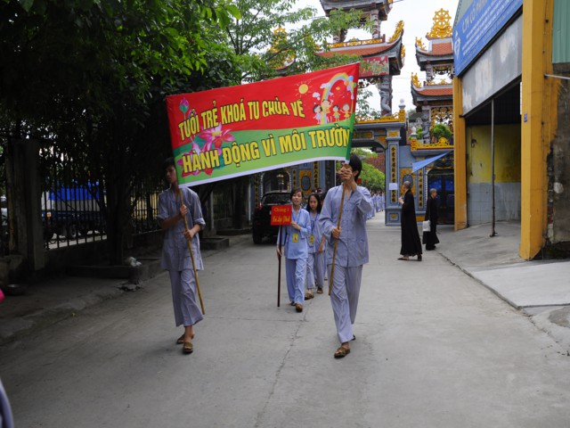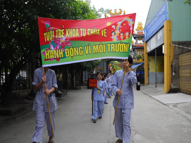 Chiều cùng ngày, các bạn lắng nghe sư chia sẻ của sư cô Diệu Như, tiến sĩ Phật học ở Trung Quốc mới về và sau đó các bạn đã được tham gia diễu hành trên đường phố với khẩu hiểu TUỔI TRẺ KHÓA TU CHÙA VẼ HÀNH ĐỘNG VÌ MÔI TRƯỜNG. Đây được xem là một việc làm thiết thực trong khóa tu mà Ban tổ chức đã đề ra, thông qua đó cho các bạn nhận thức được hành động của mình tuy rất nhỏ nhưng lại đóng góp vào công việc bảo vệ chăm sóc môi trường sống xung quanh thật ý nghĩa.