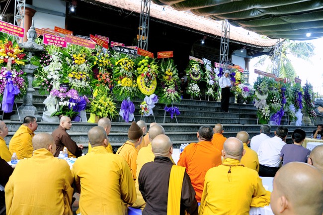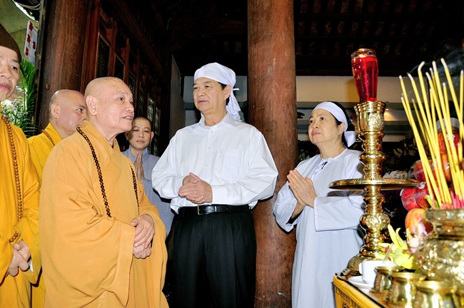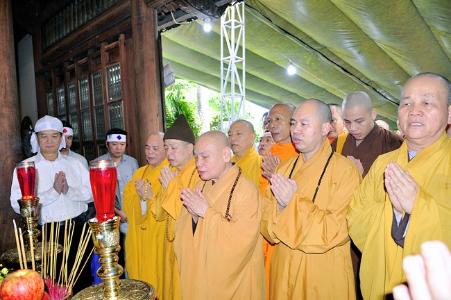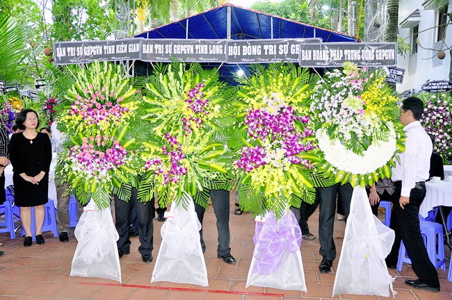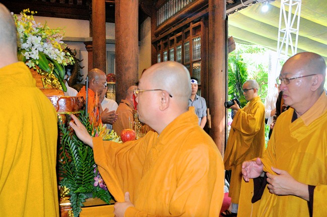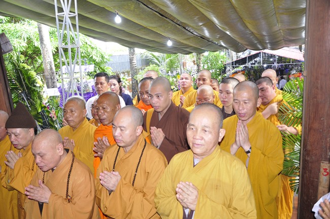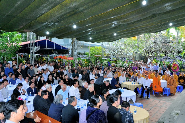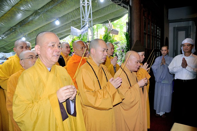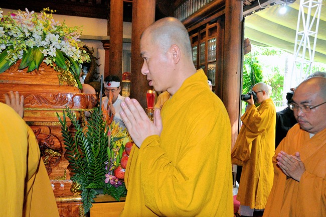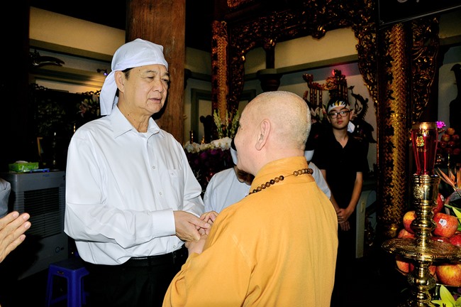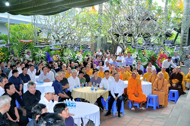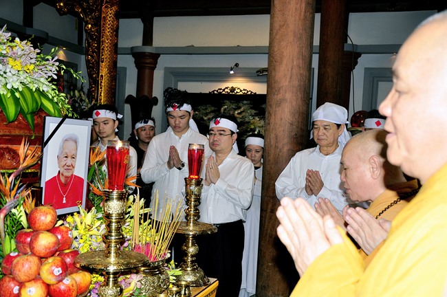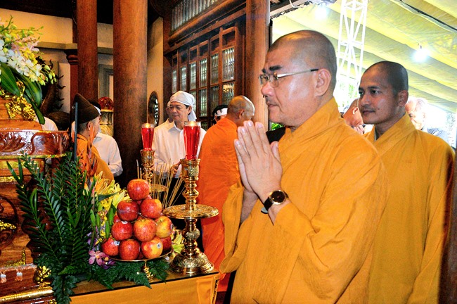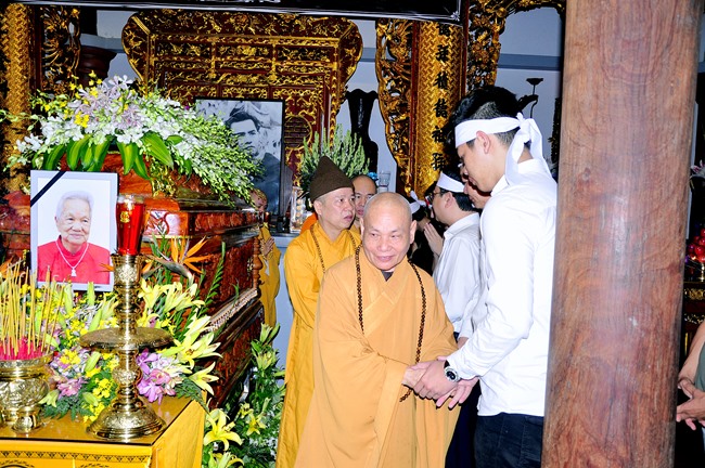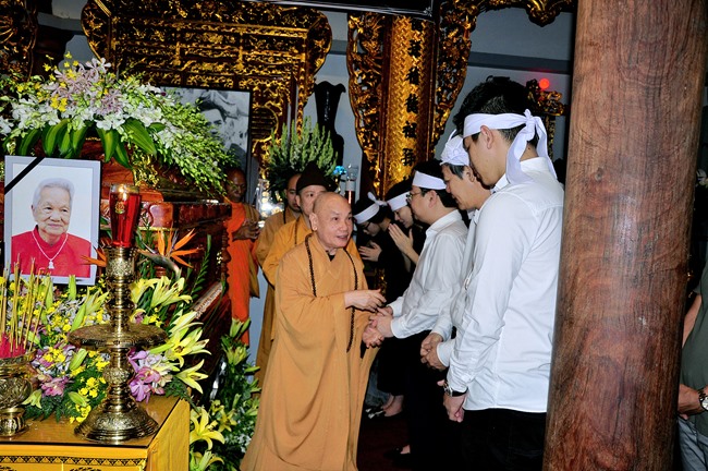 Sau giờ phút truy điệu, Hòa thượng Chủ tịch HĐTS và chư tôn giáo phẩm Hòa thượng, Thượng tọa GHPGVN, chư tôn đức tỉnh Kiên Giang có thời kinh ngắn cầu nguyện hương linh cụ bà Nguyễn Thị Hường cao đăng Phật quốc.
