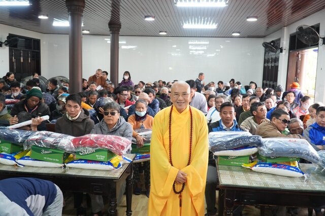 HT.Thích Khế Chơn đã có lời thăm hỏi, động viên đến bà con; mong rằng bà con cố gắng vượt qua những khó khăn, vươn lên trong cuộc sống, xây dựng cuộc sống an lạc tốt đạo, đẹp đời. Nhân dịp đón mừng năm mới Giáp Thìn, Hòa thượng cũng cầu nguyện Tam Bảo gia hộ cho quý Phật tử cùng những người thân trong gia đình luôn được sức khỏe, an vui.