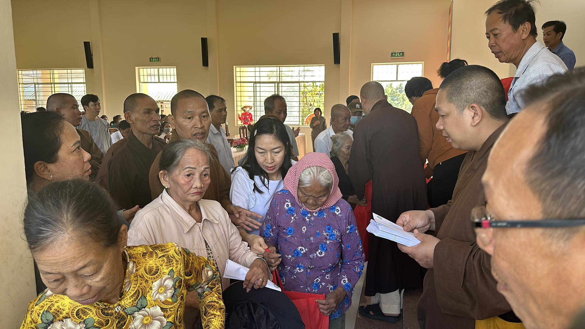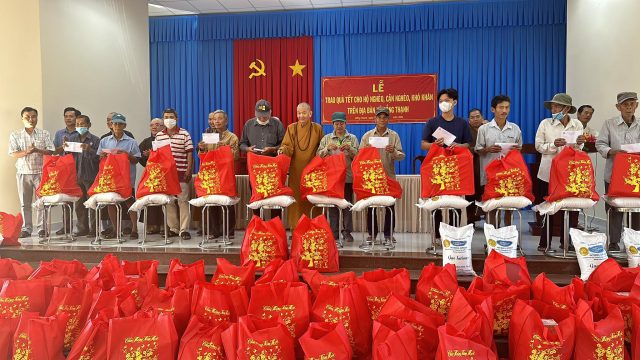 Chương trình đã trao tặng 300 phần quà Tết cho bà con, mỗi phần quà trị giá 700 nghìn đồng, gồm: 10 kg gạo, 1 thùng mì, như yếu phẩm, đường, dầu, nước tương và bao thư 300 ngàn đồng. Tổng trị giá các phần quà là 105 triệu đồng được sự ủng hộ của quý Phật tử hảo tâm tài trợ.