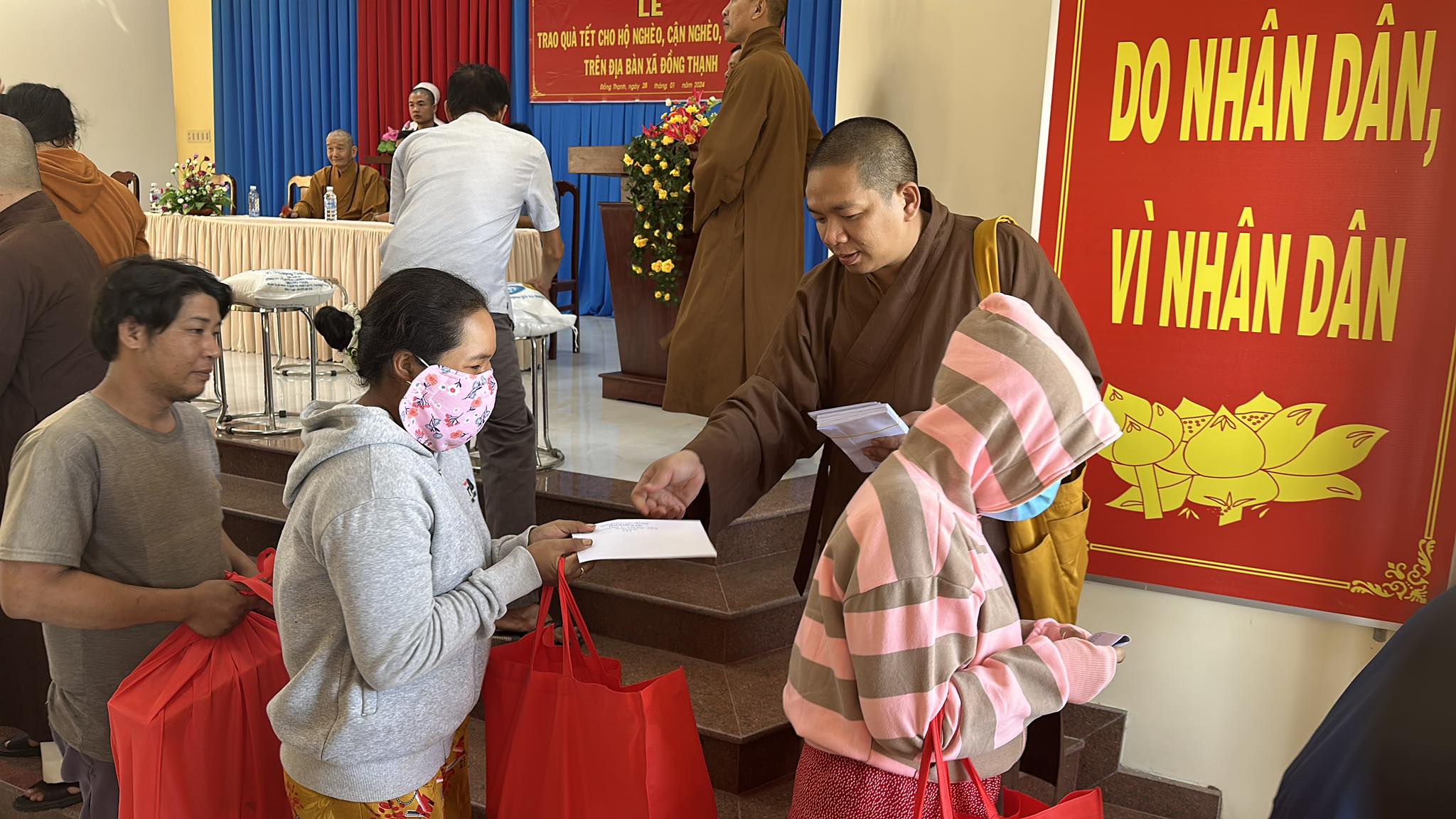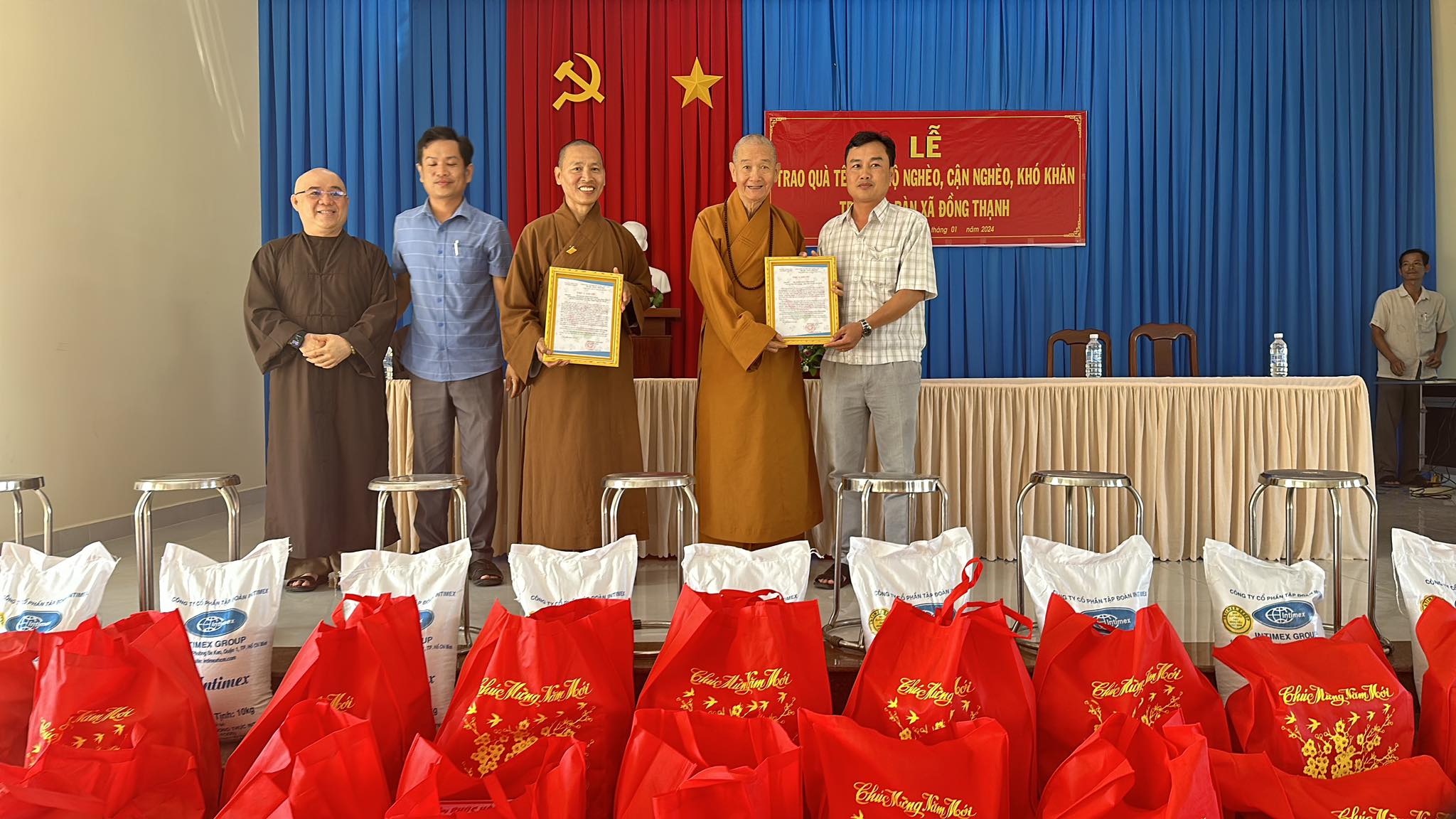 Ngày 28-1-2024 ( nhằm 18-12AL), dưới sự hướng dẫn của Hoà thượng Thích Hùng, Uỷ viên Thường trực HĐCM, cùng chư Tăng và Phật tử Tổ đình Vạn Thọ (Q.1) và Tổ đình Phổ Quang (Q. Phú Nhuận) đã trao tặng 150 phần quà cho bà con có hoàn cảnh khó khăn tại xã Đồng Thạnh, huyện Gò Công Tây, tỉnh Tiền Giang.