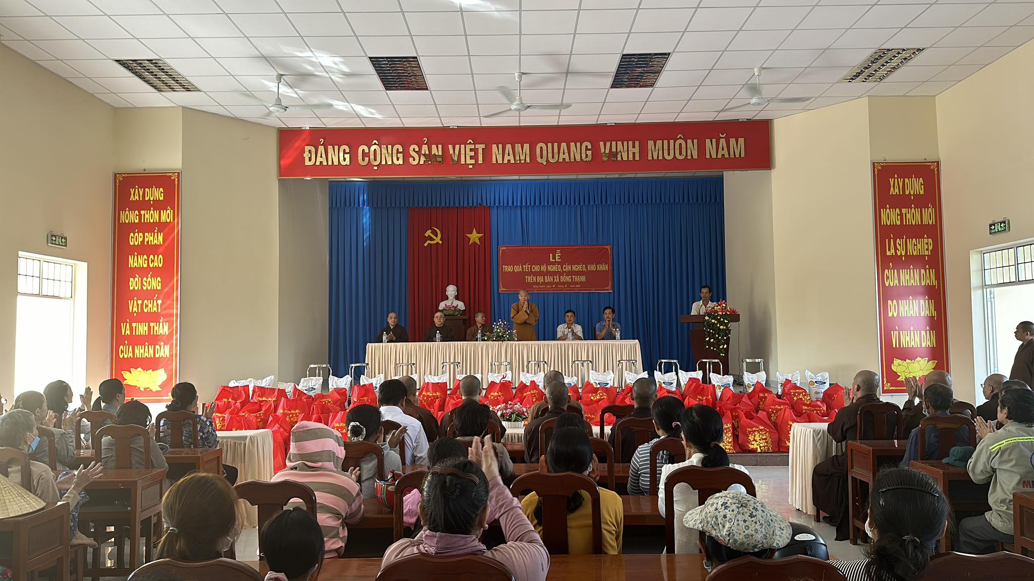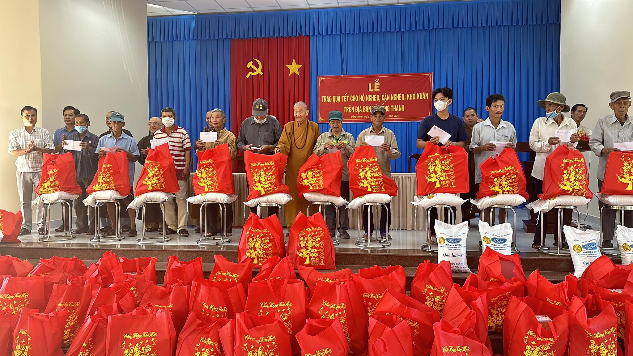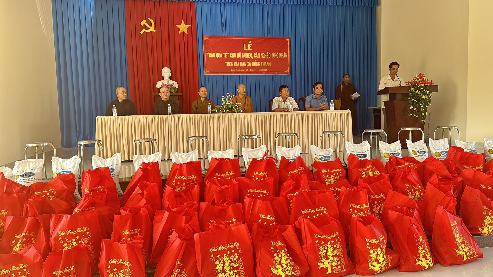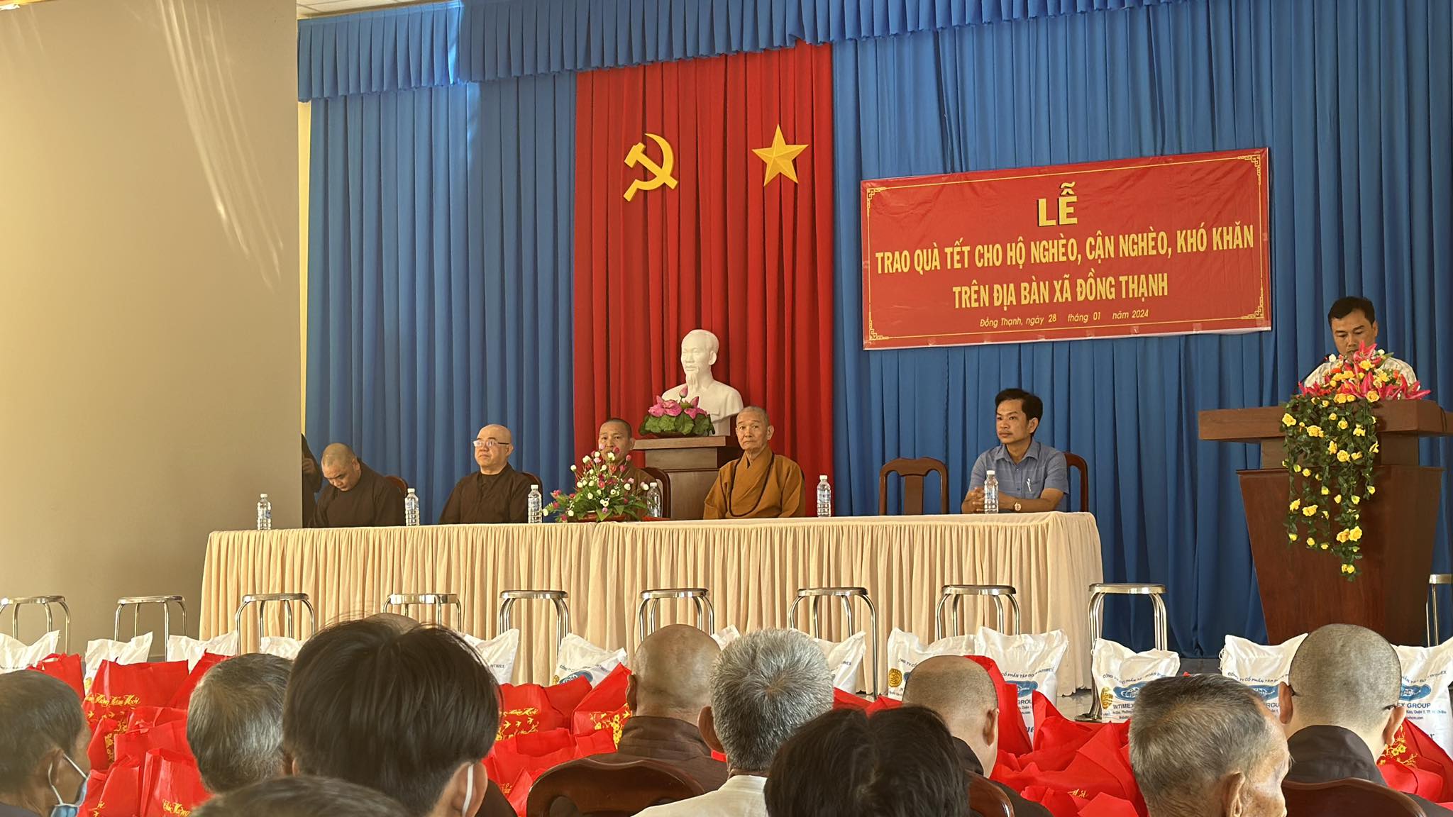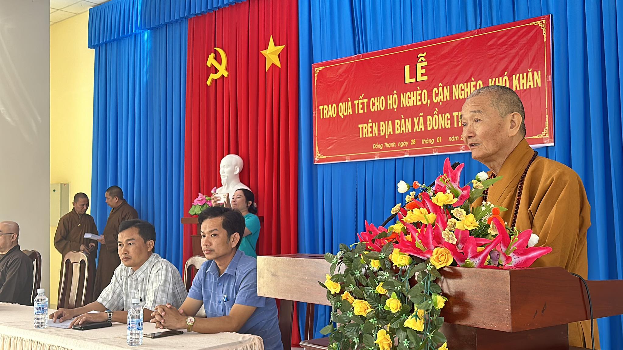 Đại diện chính quyền xã Đồng Thạnh cũng phát biểu tri ân và trao thư cảm ơn đến Hoà thượng cùng chư tôn Đức và Phật tử đã chia sẻ đến với bà con khó khăn và kính chúc bà con đón một mùa xuân mới thật đủ đầy và no ấm.