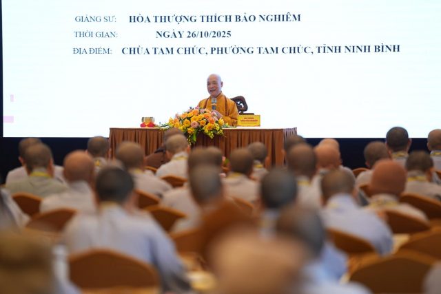 Nhận lời thỉnh mời của Ban tổ chức Lớp bồi dưỡng Luật học và Kỹ năng Trụ trì tại chùa Tam Chúc (tỉnh Ninh Bình), sáng ngày 26/10/2025, Hòa thượng Thích Bảo Nghiêm – Phó chủ tịch HĐTS, Trưởng Ban Hoằng pháp TW GHPGVN đã quang lâm và có bài thuyết giảng tới hơn 200 chư Ni các tỉnh thành phía Bắc về “Vai trò của Ni giới trong nhiệm vụ Hoằng pháp”.