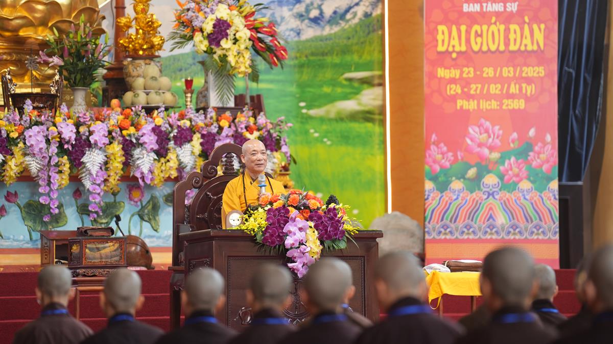 Mở đầu bài giảng, Hòa thượng đã chia sẻ Đại giới đàn Hà Nội năm 2025 được tổ chức quy mô hơn so với những năm trước, thể hiện tầm quan trọng trong việc chọn lựa người kế thừa mạng mạch Phật pháp, gánh vác Phật sự cho tương lai, đưa Giáo hội ngày càng đi vào kỷ cương nề nếp.