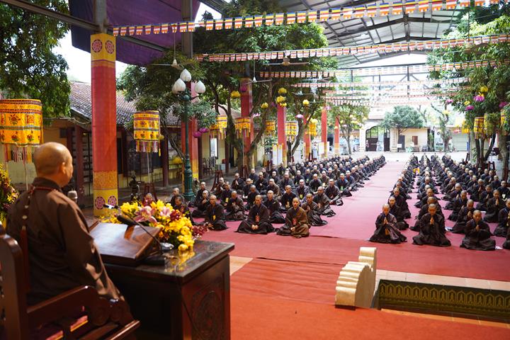 Trong ngày hành sám thứ tư này, Hòa thượng Thích Bảo Nghiêm – Phó chủ tịch HĐTS, Trưởng Ban hoằng pháp TƯ, Trưởng BTS GHPGVN thành phố Hà Nội đã quang lâm pháp tòa và có thời pháp thoại giáo giới cho Giới tử với chủ đề “Lộ trình xuất gia giải thoát”.