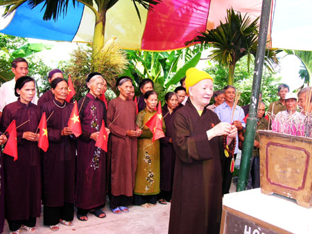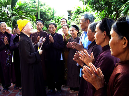 Nhân dịp này Hòa thượng cùng các vị lãnh đạo chính quyền địa phương và các gia đình chính sách làm lễ cầu siêu và thắp hương tưởng niệm các Anh hùng liệt sĩ. Tại buổi gặp gỡ, Hòa thượng xúc động bày tỏ lòng biết ơn đối những người đã tự nguyện hiến dâng cả cuộc sống của mình cho lý tưởng cao đẹp vì tự do của Tổ Quốc, vì hạnh phúc của nhân dân, để lại tiếng thơm muôn đời lưu truyền trong lịch sử.