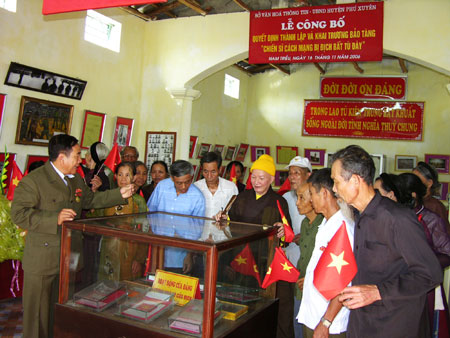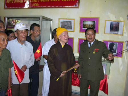 Cùng thời gian, Hòa thượng đã tới thăm Bảo tàng chiến sĩ cách mạng bị địch bắt tù đày. Giám đốc – thương binh Lâm Văn Bảng và các vị lãnh đạo Bảo tàng giới thiệu với HT các tư liệu và hiện vật quí đang được trân trọng lưu giữ.