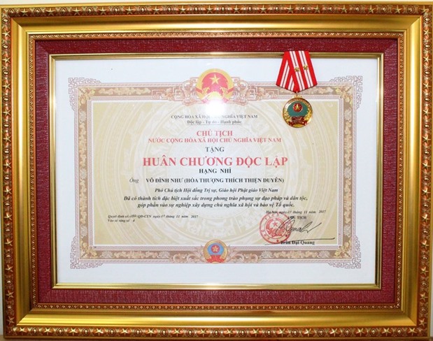 Cũng trong dịp này, HT.Thích Thiện Duyên (Phó Chủ tịch HĐTS kiêm Trưởng ban HDPT T.Ư GHPGVN nhiệm kỳ VII) được đại hội cung thỉnh suy tôn vào ngôi vị Phó Pháp chủ GHPGVN. Ghi nhận những đóng góp của Hòa thượng suốt nhiệm kỳ qua, Chủ tịch nước cũng đã quyết định tặng Huân chương Độc lập hạng Nhì cho Trưởng lão HT.Thích Thiện Duyên.