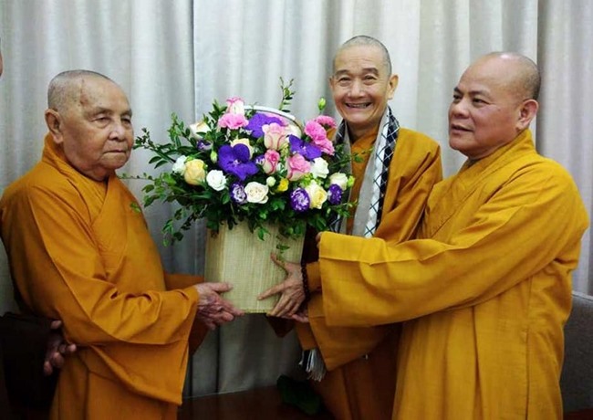 HT.Thích Tấn Đạt, HT.Thích Thanh Hùng tặng hoa chúc mừng Hòa thượng Phó Pháp chủ GHPGVN