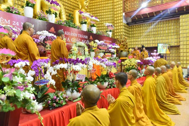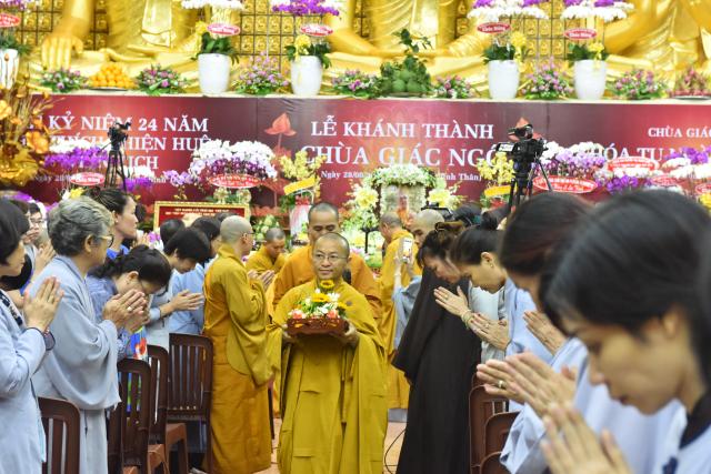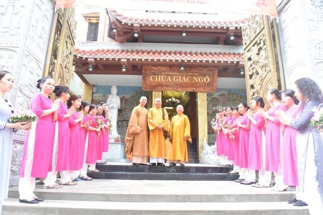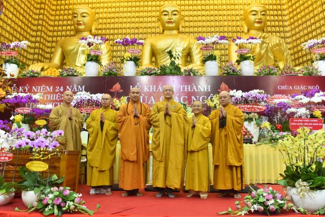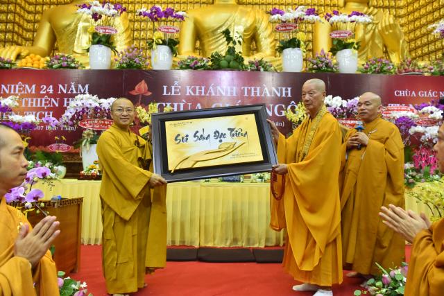 Mặc dù bận rất nhiều Phật sự, Hòa thượng đã dấn thân Phật pháp không mệt mỏi, nơi nào cần chúng sanh Ngài đến, nơi nào Phật pháp cần Ngài đi, chẳng ngại gian lao, chẳng cần khó nhọc, Ngài là hiện thân Bồ tát. Hôm nay, toàn thể Tăng đoàn chùa Giác Ngộ và các Phật tử vô cùng khát khao muốn được nghe những lời pháp âm vi diệu của Hòa thượng ban bố cho chúng con để chúng con lấy đó làm hành trang trên bước đường tu học và làm Phật sự của chúng con.