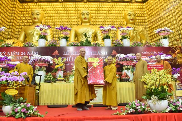 Trước khi Hòa thượng ban đạo từ là lễ tưởng niệm của Hòa thượng đối với cố Hòa thượng Thích Thiện Huệ – Viện chủ chùa Giác Ngộ. Sau đó Hòa thượng đã tặng khánh vàng do Viện nghiên cứu Phật học Việt Nam và khánh của Hòa thượng trao tặng cho chùa Giác Ngộ nhân dịp khánh thành chùa.