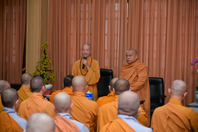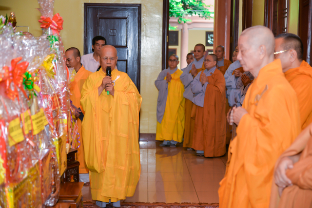 TT.Thích Bửu Chánh – phó Viện Trưởng HVPGVN TP.HCM thay lời chư tôn đức HĐĐH, Nhân viên VP HVPGVN tại TP.HCM gửi lời chúc sức khỏe đến HT. Thích Trí Quảng – Phó Pháp Chủ GHPGVN, Viện Trưởng Học Viện PGVN TP.HCM và HT. Thích Giáo Toàn – Phó Viện Trưởng Học Viện Phật Giáo Việt Nam TP.HCM.