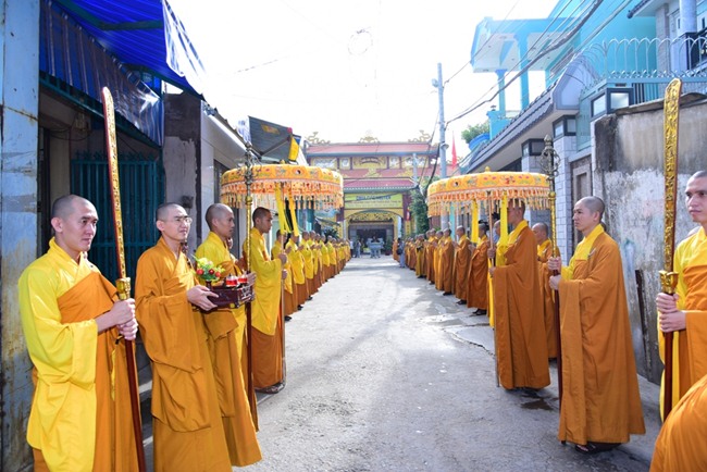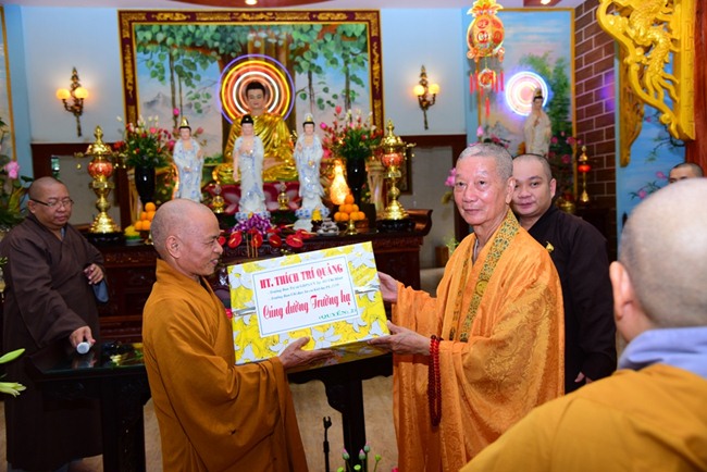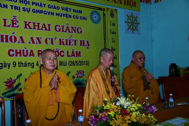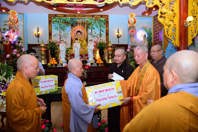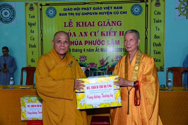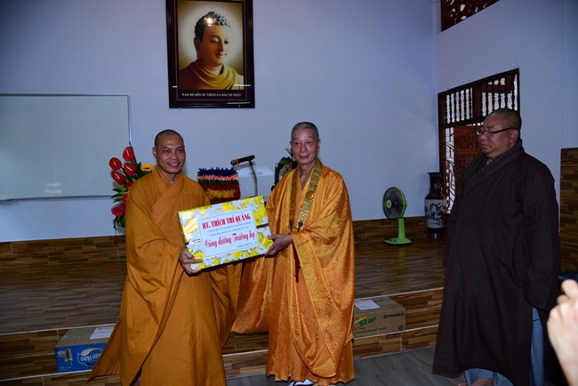 Đoàn đi, còn có sự hiện diện của TT. Thích Đồng Văn, Phó Ban kiêm Chánh Thư ký Ban Tăng sự, ĐĐ. Thích Trung Nguyện, Phó Văn phòng Ban Trị sự , ĐĐ. Thích Hải Đạt, Phó Trưởng ban TT Ban Thông tin Truyền thông GHPGVN TP.HCM cùng Phật tử Đạo tràng Pháp Hoa TP.HCM phát tâm cúng dường các trường Hạ.