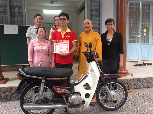 Trước đó. Tại chùa Từ Tân, Quận Tân Bình, HT. Thích Viên Giác cùng với chính quyền Phường 12 sở tại cũng đã làm lễ bàn giao tặng cho sinh viên nghèo hiếu học có hoàn cảnh đặc biệt một chiếc xe máy, trị giá 15 triệu đồng… nhằm hỗ trợ phương tiện đi học cho em Lưu Xuân Triệu Vĩ, sinh năm 1997, hiện là sinh viên năm thứ 2, trường Đại học Thông tin Mật mã, thuộc Bộ Quốc phòng.