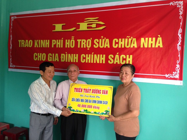 Theo đó, HT. Thích Viên Giác, Trụ trì chùa Từ Tân, Q. Tân Bình, viện chủ Thiền Thất Hương Vân đã hỗ trợ kinh phí 40 triệu đồng cho hộ gia đình có công là nhà mẹ VNAH Đặng Thị Khước, SN 1933 thường trú tại Ấp Bàu Chứa, xã Nhuận Đức, huyện Củ Chi, TP.HCM.